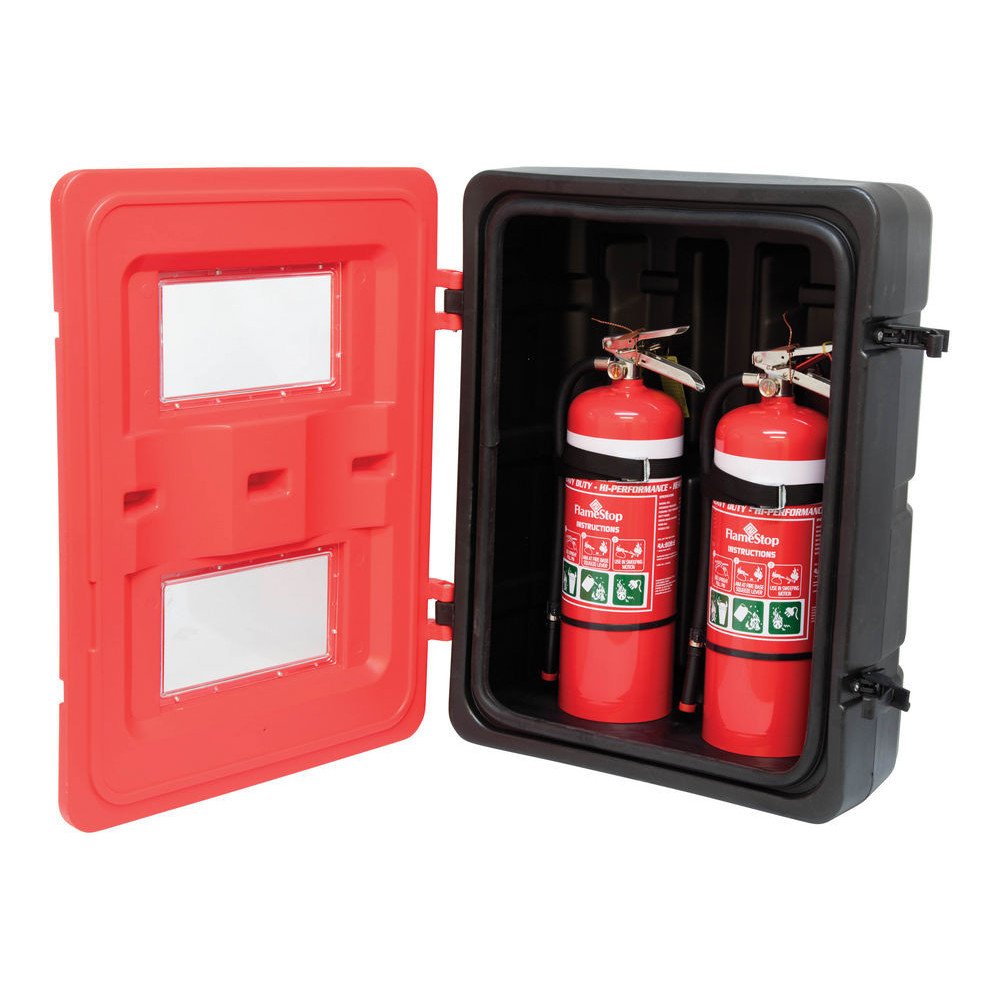 Keep your fire safety equipment protected and accessible with the Double Fire Extinguisher Box (Plastic, Weatherproof), designed to house two extinguishers (2kg CO₂ or DCP type). Built with heavy-duty, UV-stabilized plastic, this cabinet ensures maximum durability and resistance against weather, dust, and corrosion, making it ideal for outdoor and industrial use.