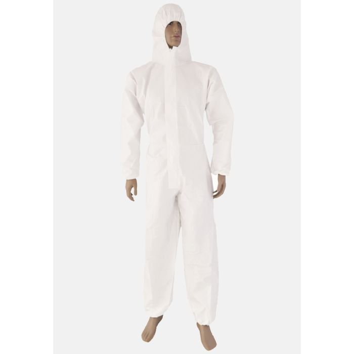 SAFETYPLUS TYPE 5/6 DISPOSABLE Micro porous Coverall , 65gsm, Antistatic with Zipper flap cover and Adhesive tapes, Surged Seam with Hood, No Boots.