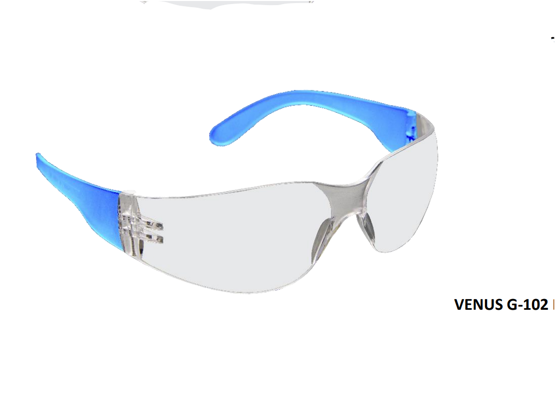 Venus G-102 are safety spectacles with a unique design and features to protect from various hazards. This family of spectacles comes in two sizes G-102 Regular and G-102 Small which covers all face panels. The spectacle has a frameless design which makes it extremely lightweight. G-102 has wrap round design which covers the entire eye leaving no gaps for particle penetration.